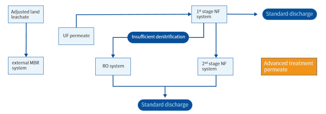 The landfill leachate treatment plant adopts the international advanced combined process of "external MBR (two-stage biological denitrification) + two-stage nanofiltration/reverse osmosis". The treatment scale is 500m3 /d, and the treated effluent meets the national emission standard. The project adopted SURO NF30-8040 membrane elmemnt and replaced the original imported nanofiltration membrane products 小伙老太小说. Since its installation and operation in June 2018, the nanofiltration membrane system has maintained a good CODcr removal rate while operating at a lower energy consumption.